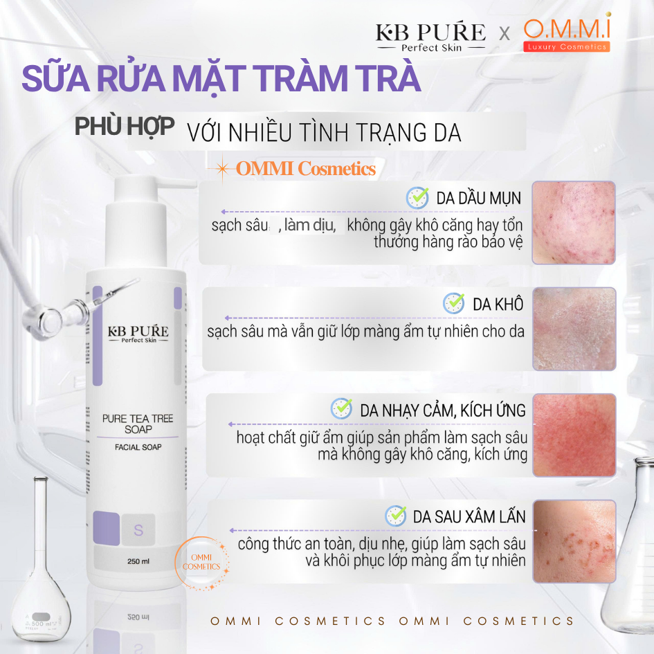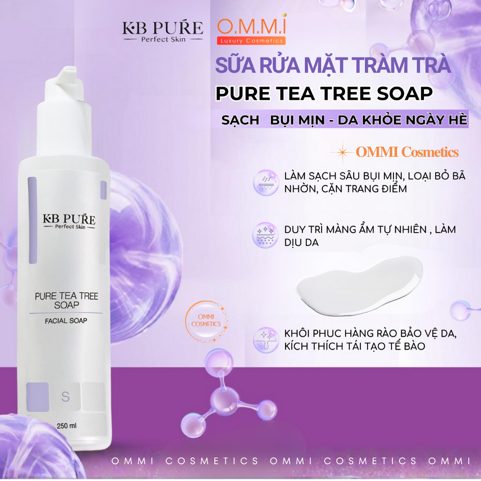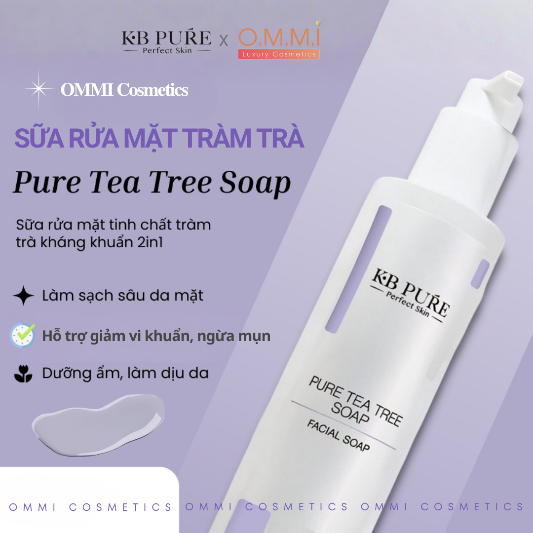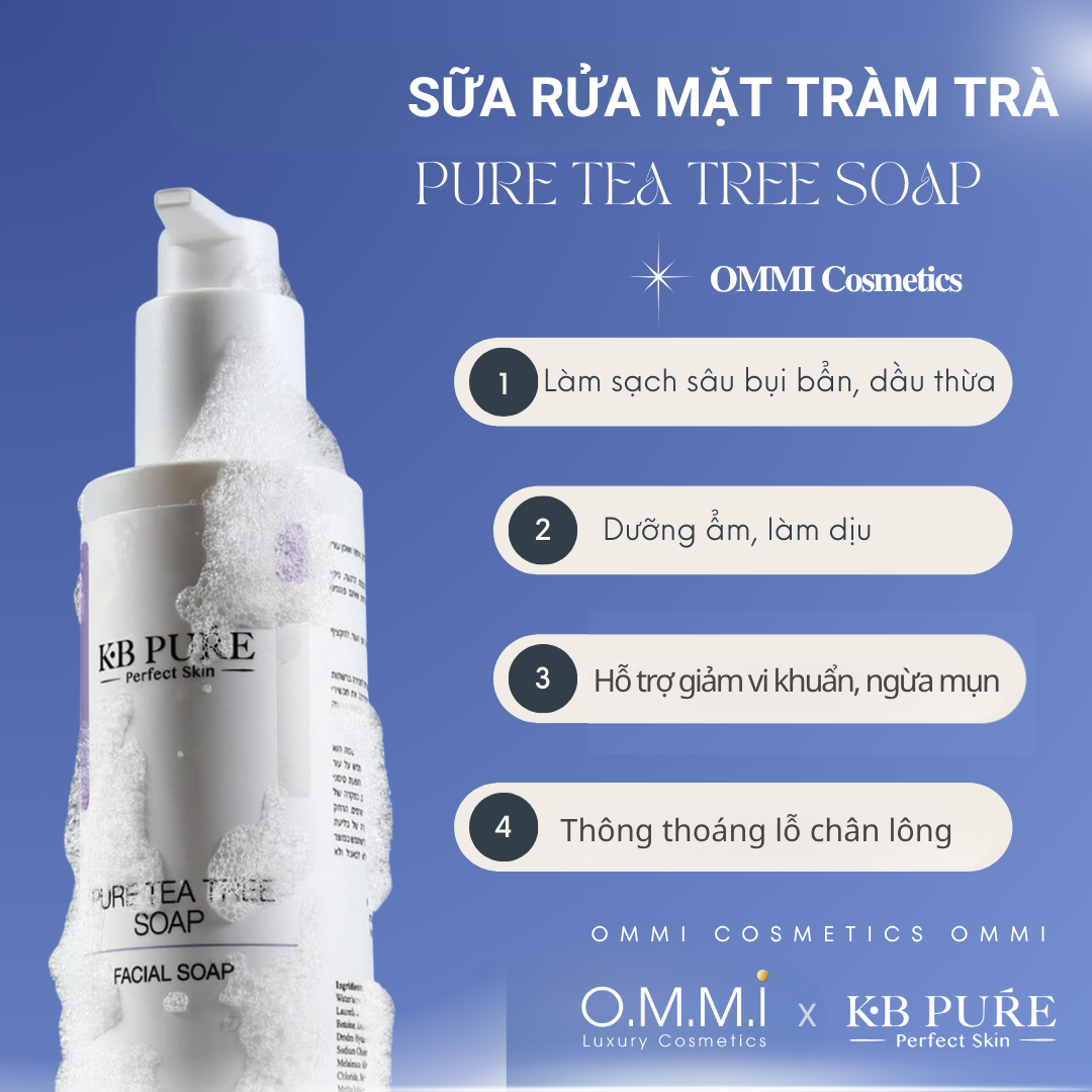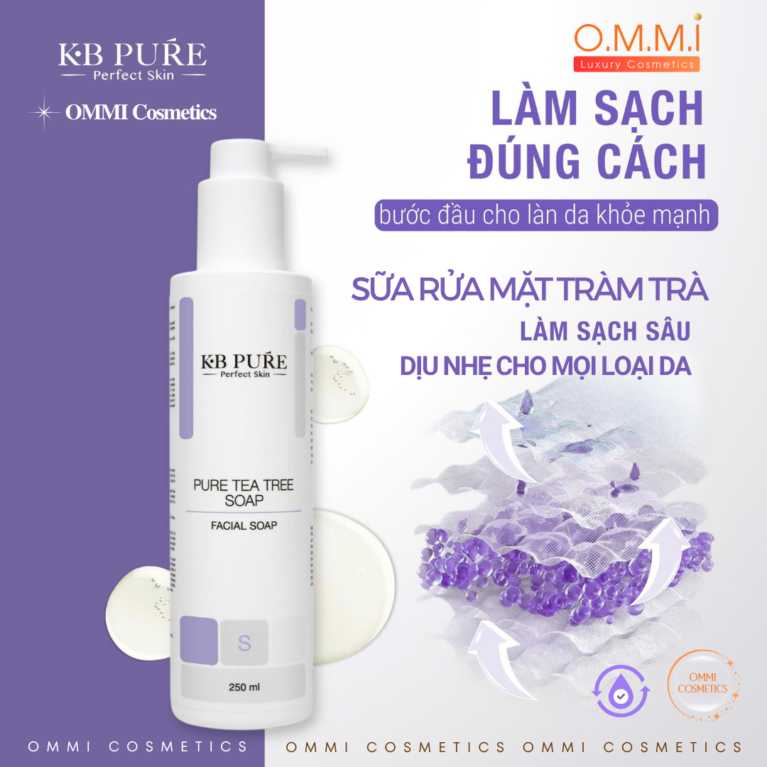 Làm sạch da là bước nền tảng của mọi chu trình chăm sóc da. Một sản phẩm rửa mặt tốt không chỉ giúp loại bỏ bụi bẩn và dầu thừa mà còn phải bảo vệ lớp màng ẩm tự nhiên, duy trì cân bằng cho làn da. KB Pure – Tea Tree Soap được nghiên cứu bởi chuyên gia da liễu Israel, là sự kết hợp hài hòa giữa khoa học làm sạch hiện đại và sức mạnh tự nhiên của tinh dầu Tràm Trà, mang đến trải nghiệm làm sạch hiệu quả mà vẫn dịu nhẹ, phù hợp cho cả làn da nhạy cảm.