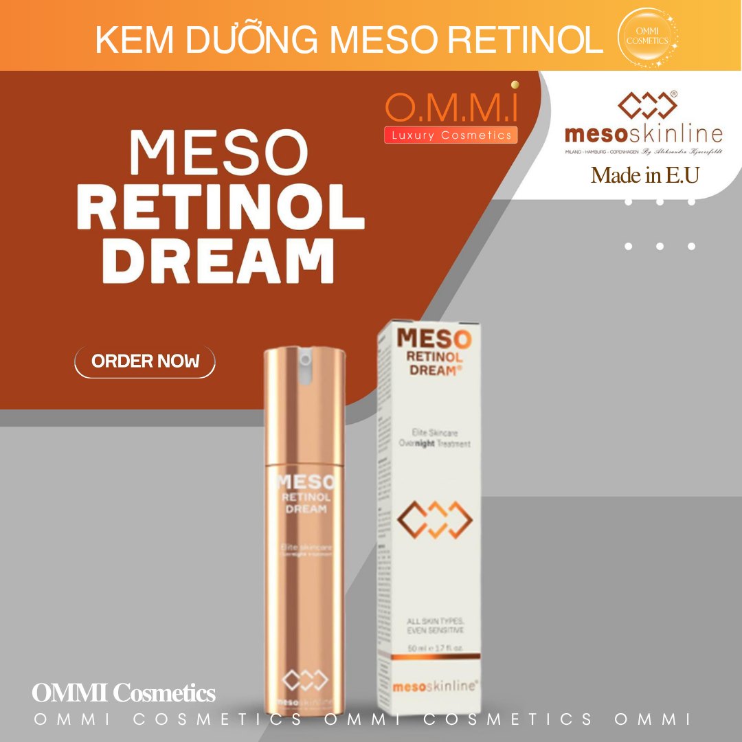 - Kem dưỡng Meso Retinol Dream Mesoskinline là một giải pháp hiệu quả tích cực cho trẻ hóa da, giảm nếp nhăn, tăng sinh collagen, săn chắc da, căng bóng, sáng da, tái tạo da chuyên sâu.