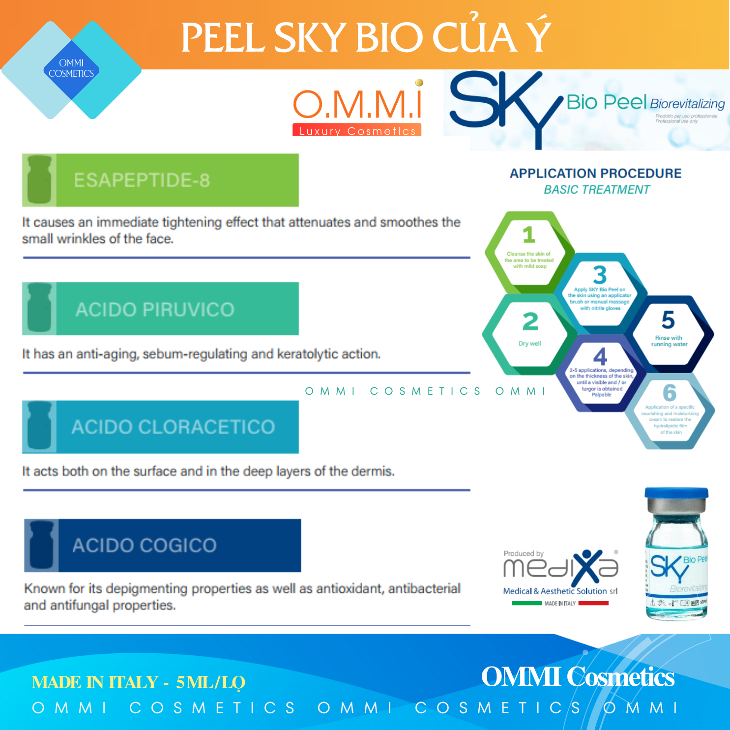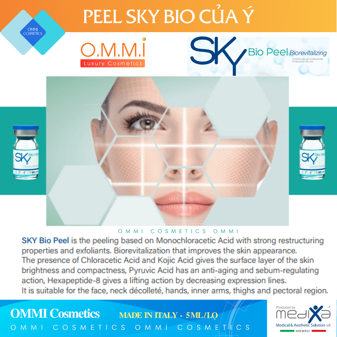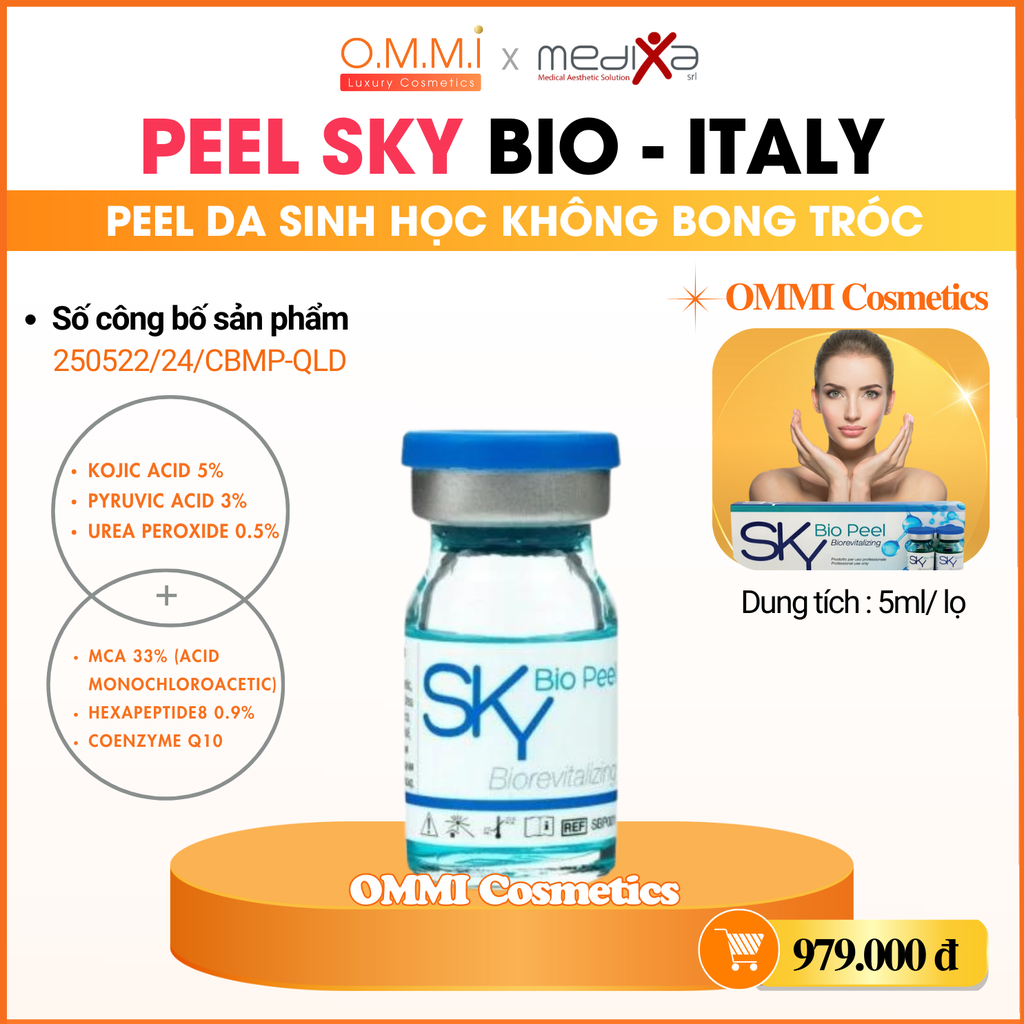 Peel SKY - Peel da sinh học thế hệ mới không bong tróc là một giải pháp để giúp làn da trở nên tươi trẻ, sạch sẽ và mịn màng hơn. Là sản phẩm Peel da cao cấp được phát triển từ các thành phần an toàn, không gây bong tróc, không gây kích ứng bề mặt. Sản phẩm được tích hợp công nghệ tiên tiến từ Ý, hiệu quả cao mà không gây kích ứng. Peel SKY Bio có thể được sử dụng tại nhà một cách dễ dàng và an toàn, giúp tái tạo da, tăng sinh collagen, cải thiện độ đàn hồi và sức sống cho da, mang lại kết quả lâu dài. Sản phẩm đã được kiểm nghiệm kỹ lưỡng và yêu thích bởi hàng ngàn khách hàng trên toàn thế giới. Hãy cùng OMMI Cosmetics trải nghiệm sự khác biệt mà Peel SKY Bio mang lại cho làn da bạn nhé.